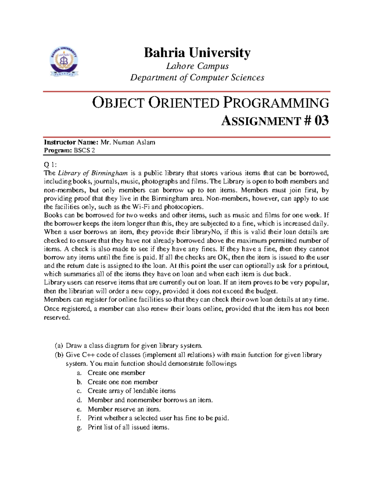 Object Oriented Programming Assignment 03 - BSCS 2 - Studocu