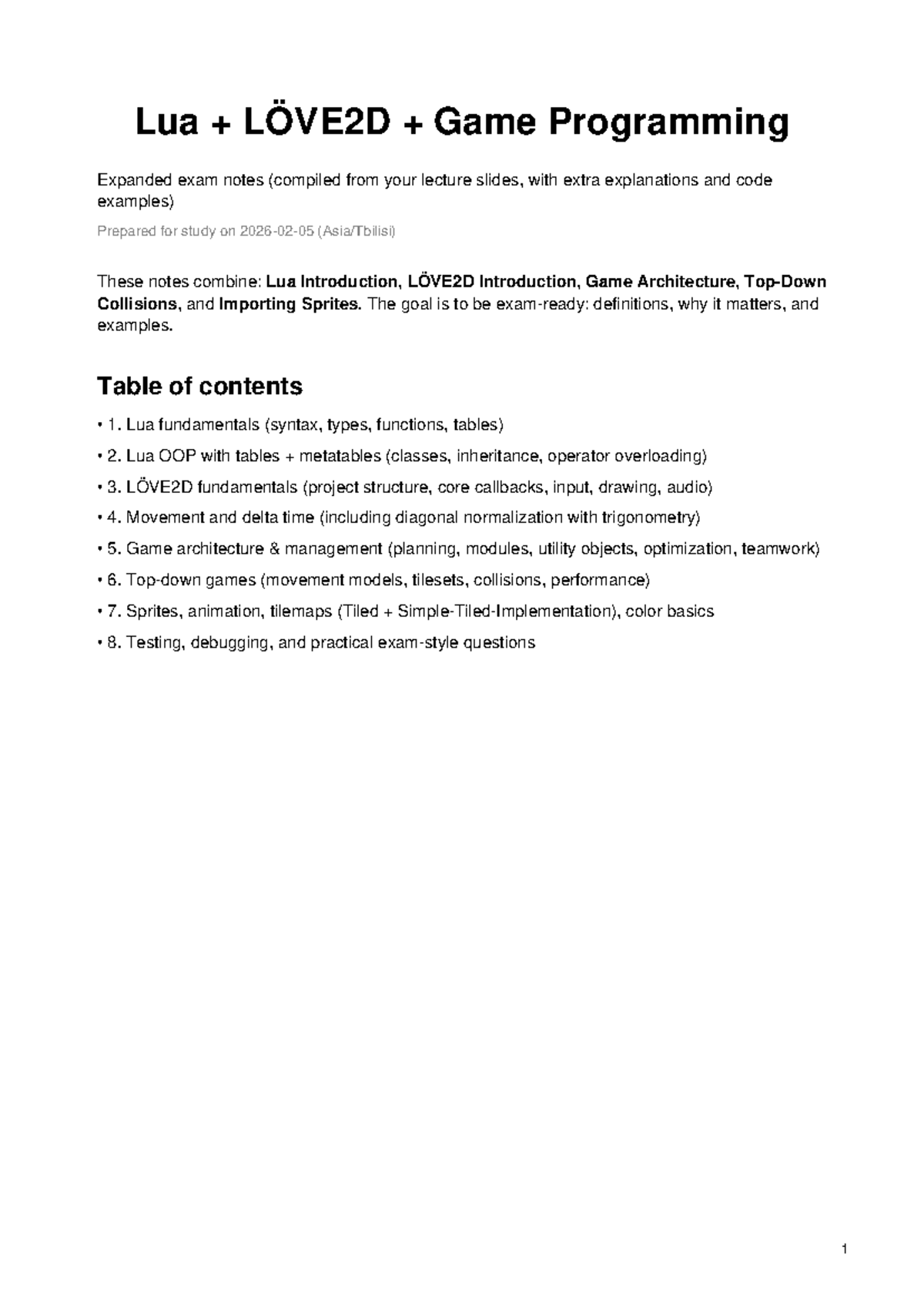 Lua LÖVE2D Game Programming Final Exam Notes - Studocu
