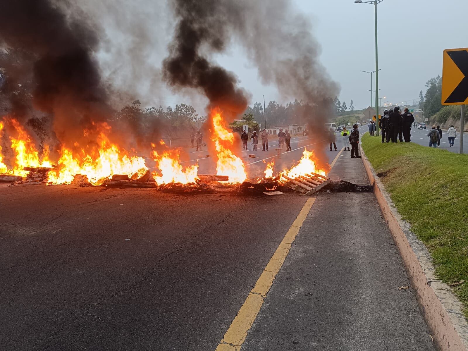 Manifestantes cierran la vía Quito-Papallacta en el sector de Palugo