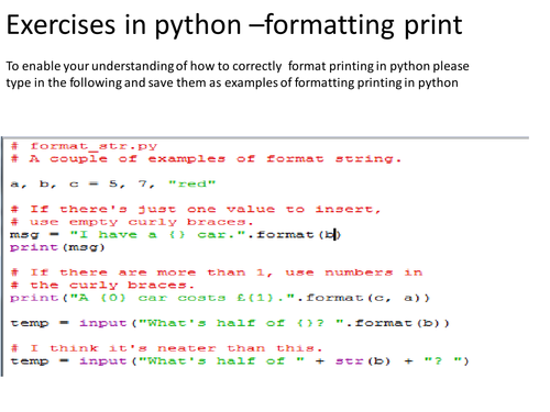 formatting output in python | Teaching Resources