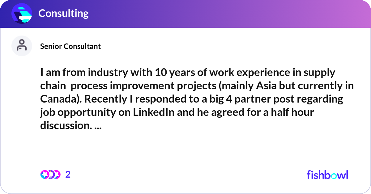 I am from industry with 10 years of work experienc... | Fishbowl