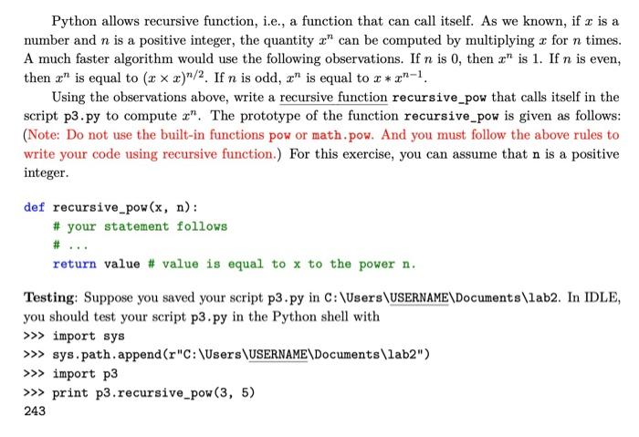 Solved Python allows recursive function, i.e., a function | Chegg.com