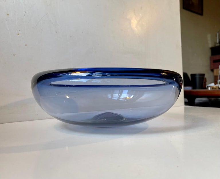 Scandinavian Modern Blue Glass Bowl by Per Lutken for Holmegaard For ...