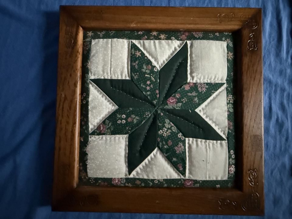 Framed QUILT SQUARE Star Pattern Oak Frame 10.5"x10.5" Floral Green ...
