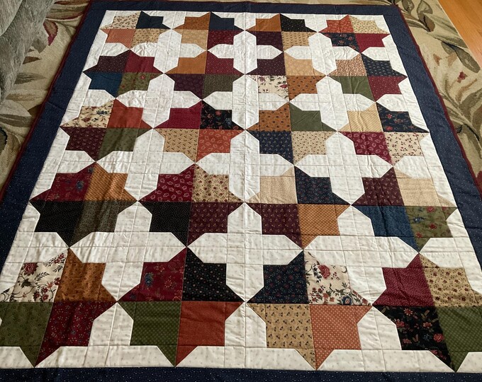 Handmade Quilt Double Square Star Pattern Kansas Troubles Fabrics Twin ...