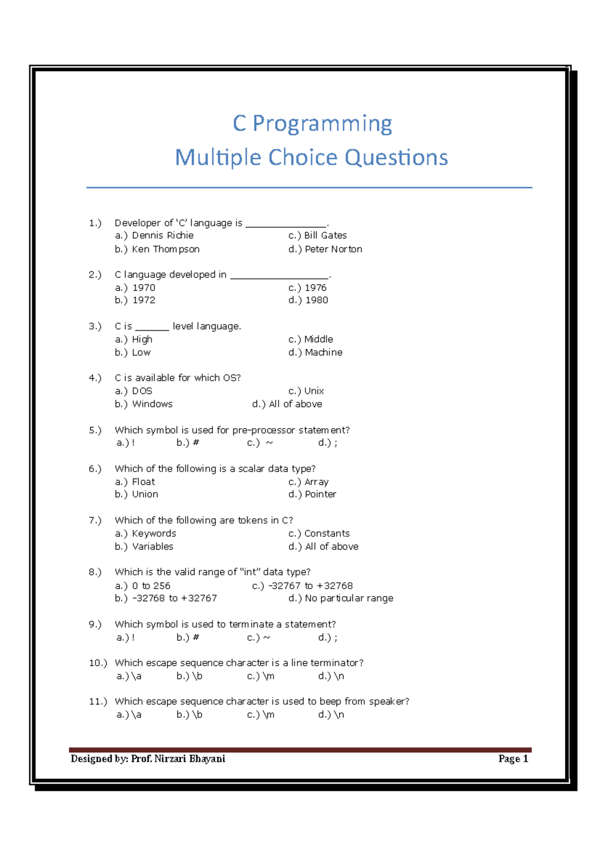 C Programming - MCQs (Practice) - C Programming - MCQs (Practice) # ...