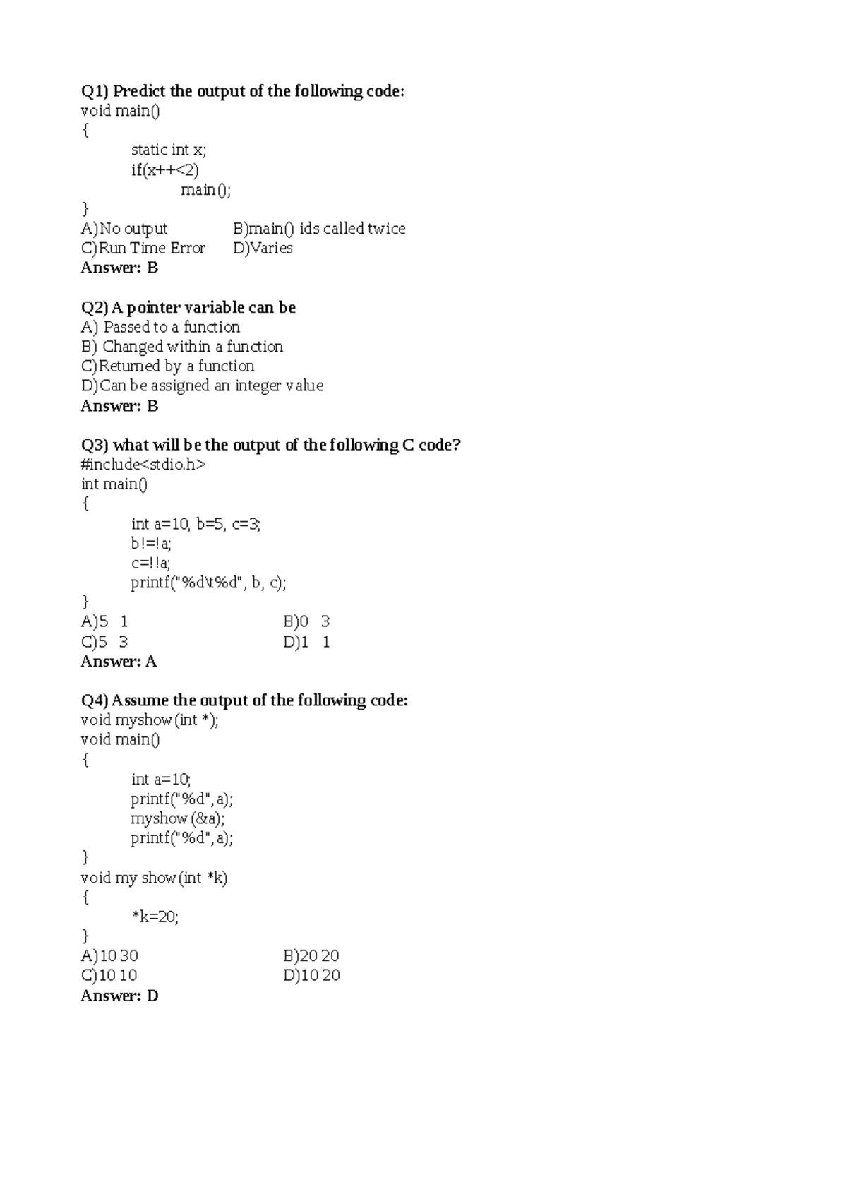 C Programming MCQ Questions and Answers | PDF | Pointer (Computer ...