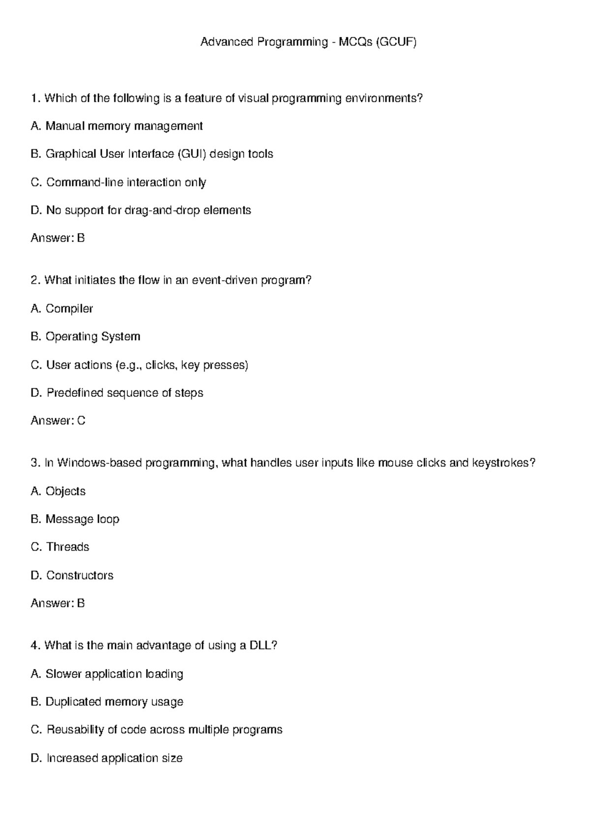 Advanced Programming MCQs (GCUF) - Key Concepts and Answers - Studocu