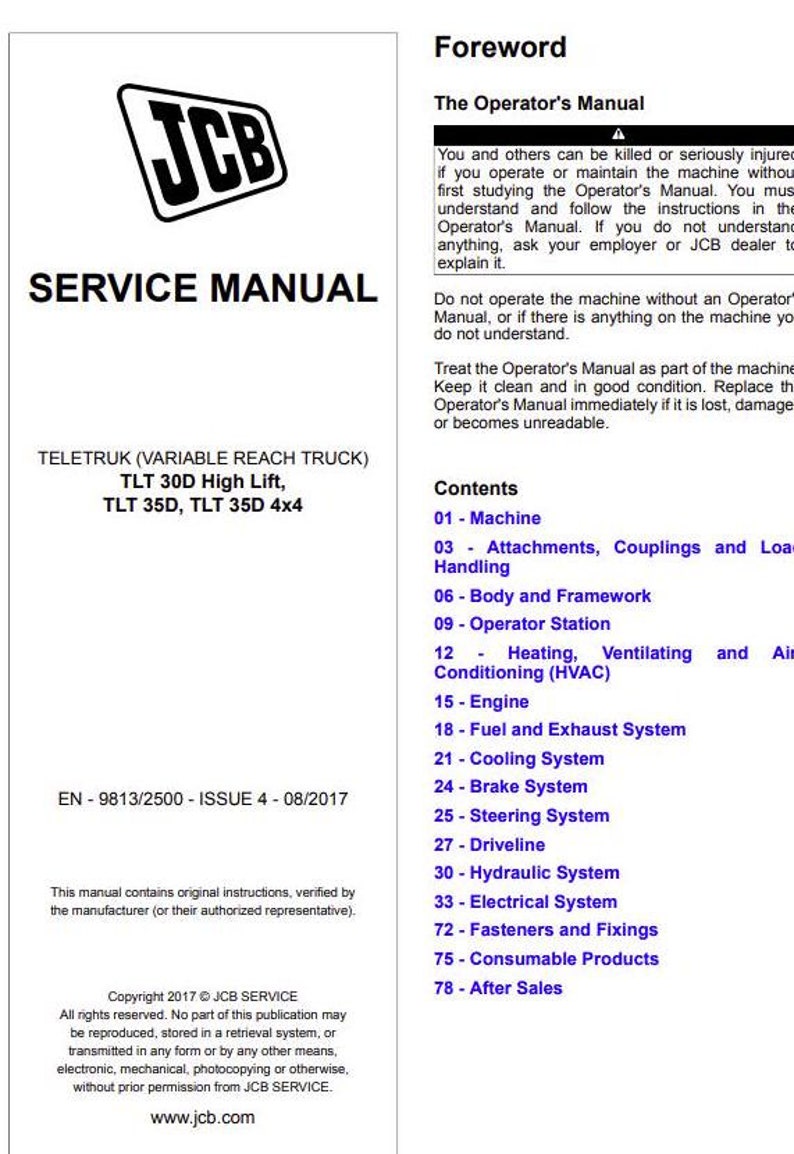JCB TLT30D, TLT35D Forklift TELETRUK Service Manual Download PDF - Etsy