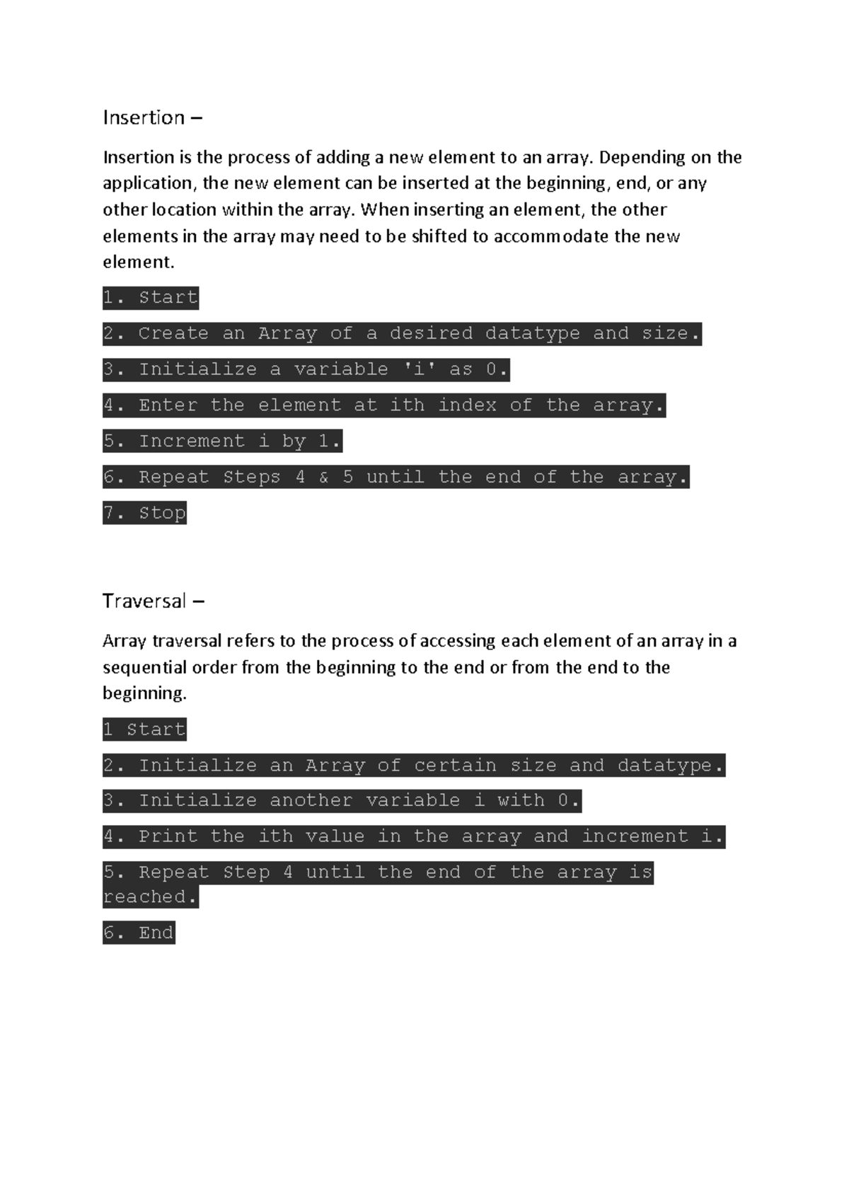 Array Operations: Insertion, Traversal, Search, and Deletion - Studocu