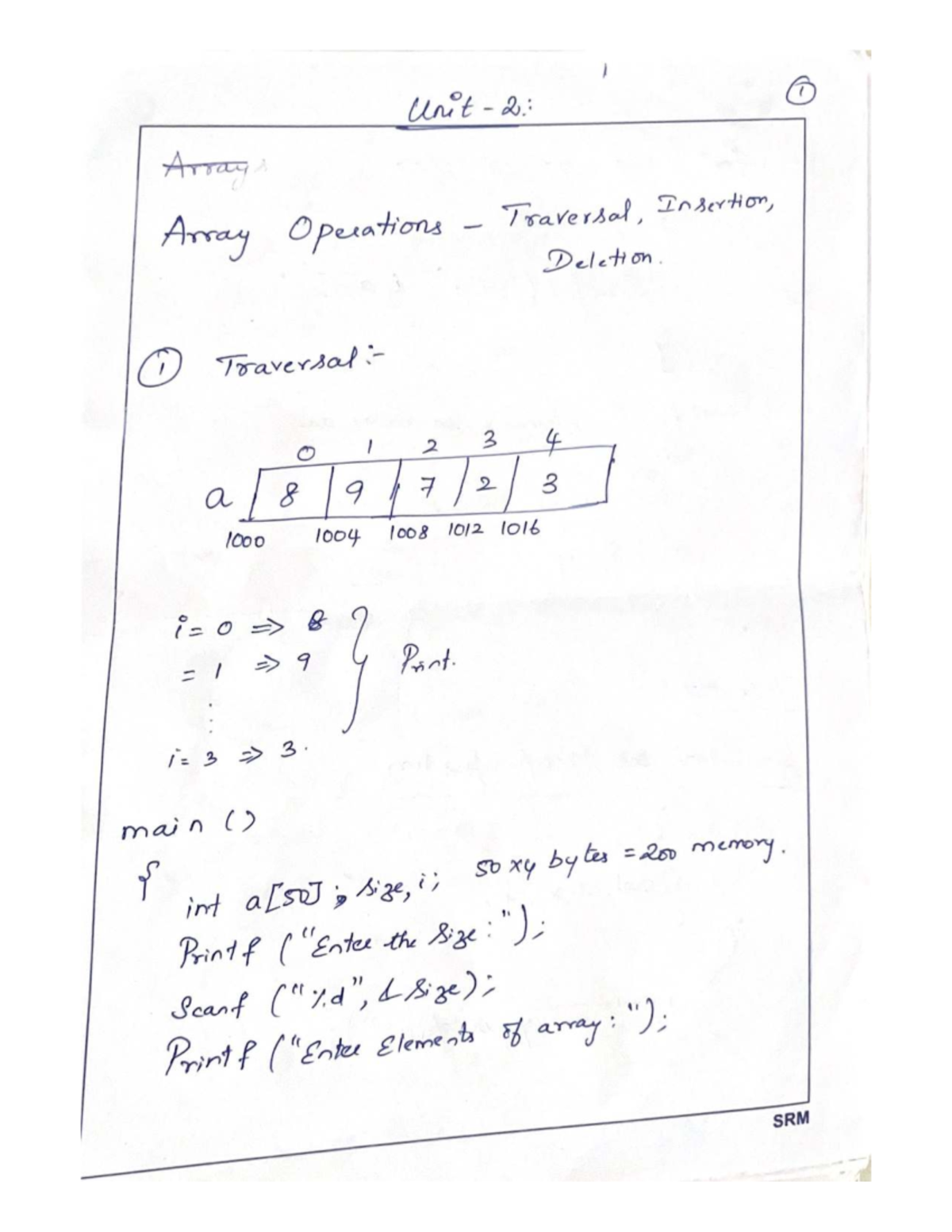 DSA UNIT II ARRAY AND LIST - notes | PDF