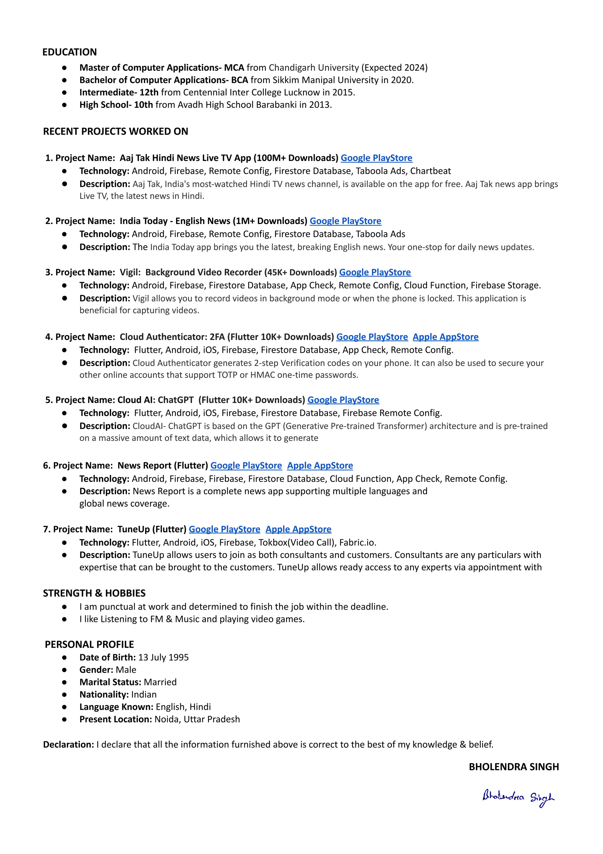 BHOLENDRA SINGH RESUME - Sr. Software Engineer at India Today Group | PDF