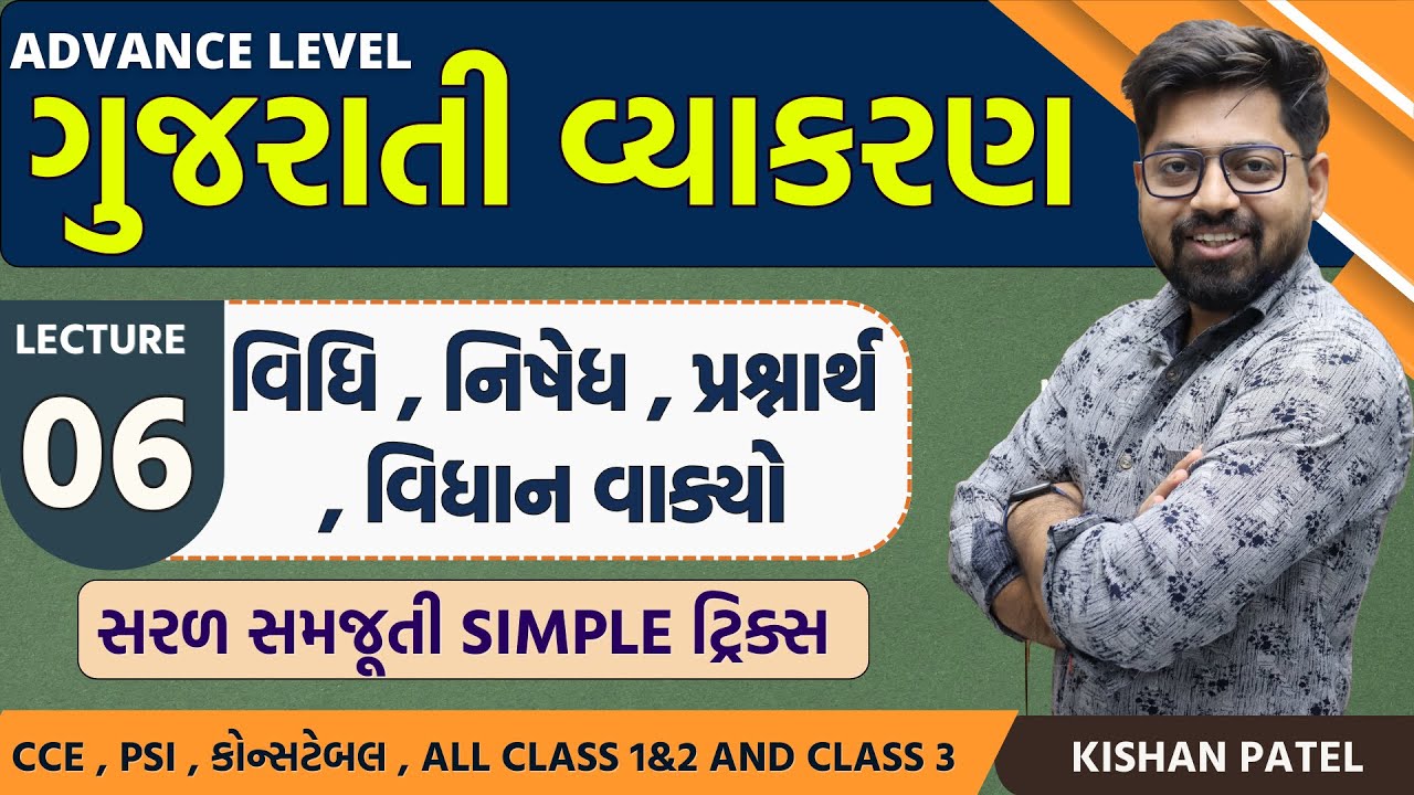 Lecture 06 : વિધિ , નિષેધ ,વિધાન વાક્ય પરીવર્તન | Vidhi nisedh Vakyo ...