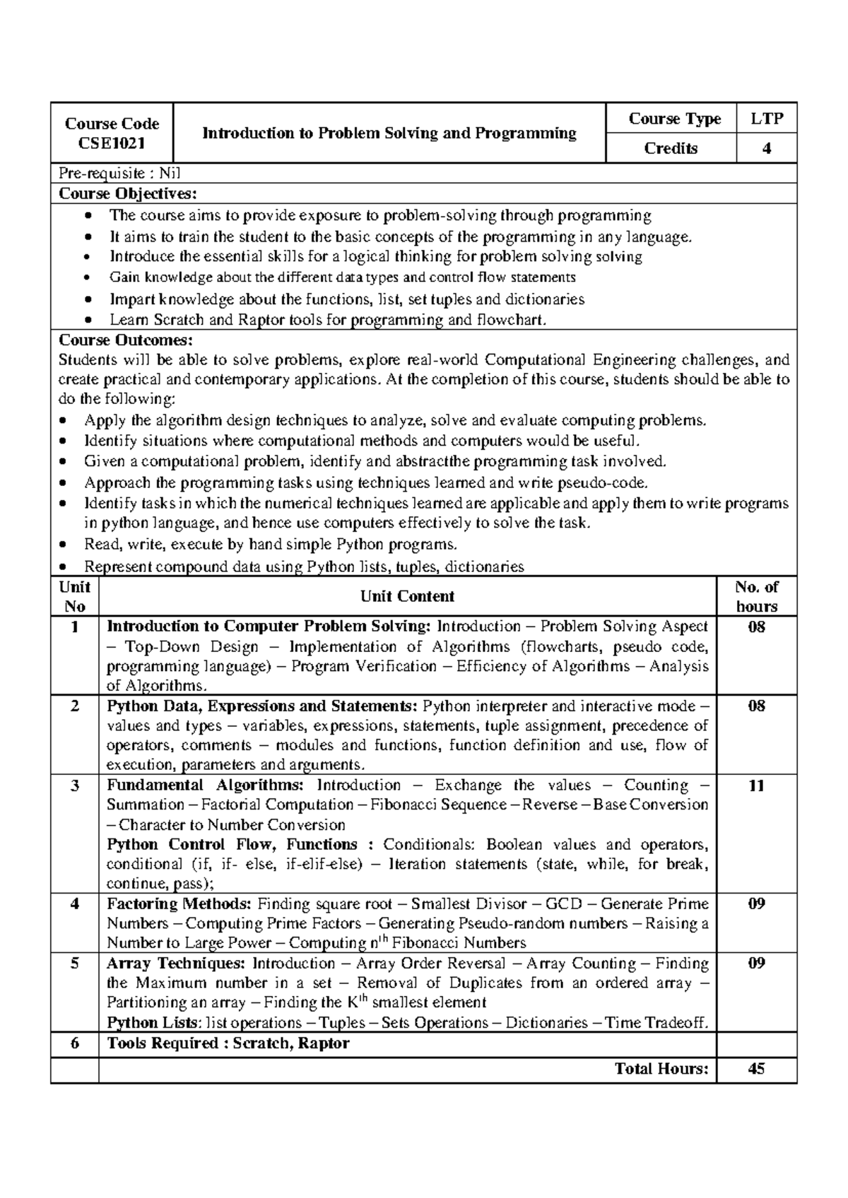 Problem Solving AND Python Programming Syllabus - PROBLEM SOLVING AND ...