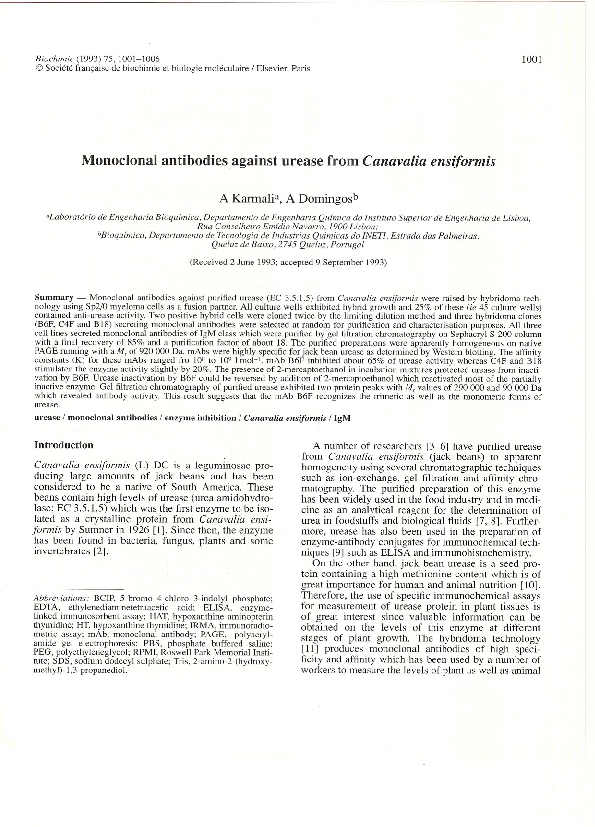 (PDF) Monoclonal antibodies against urease from Canavalia ensiformis