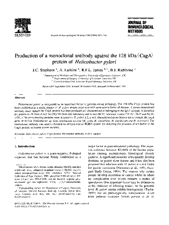 (PDF) Production of a monoclonal antibody against the 128 kDa (CagA ...