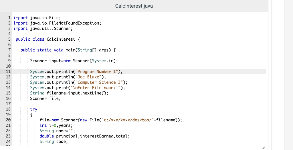 Solved Calcinterest.java 1 import java.io.File; 2 import | Chegg.com