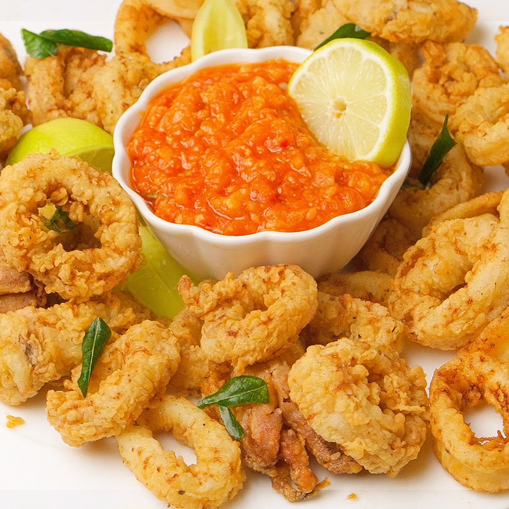Crispy Fried Calamari with Homemade Marinara Sauce, Golden Crunchy ...