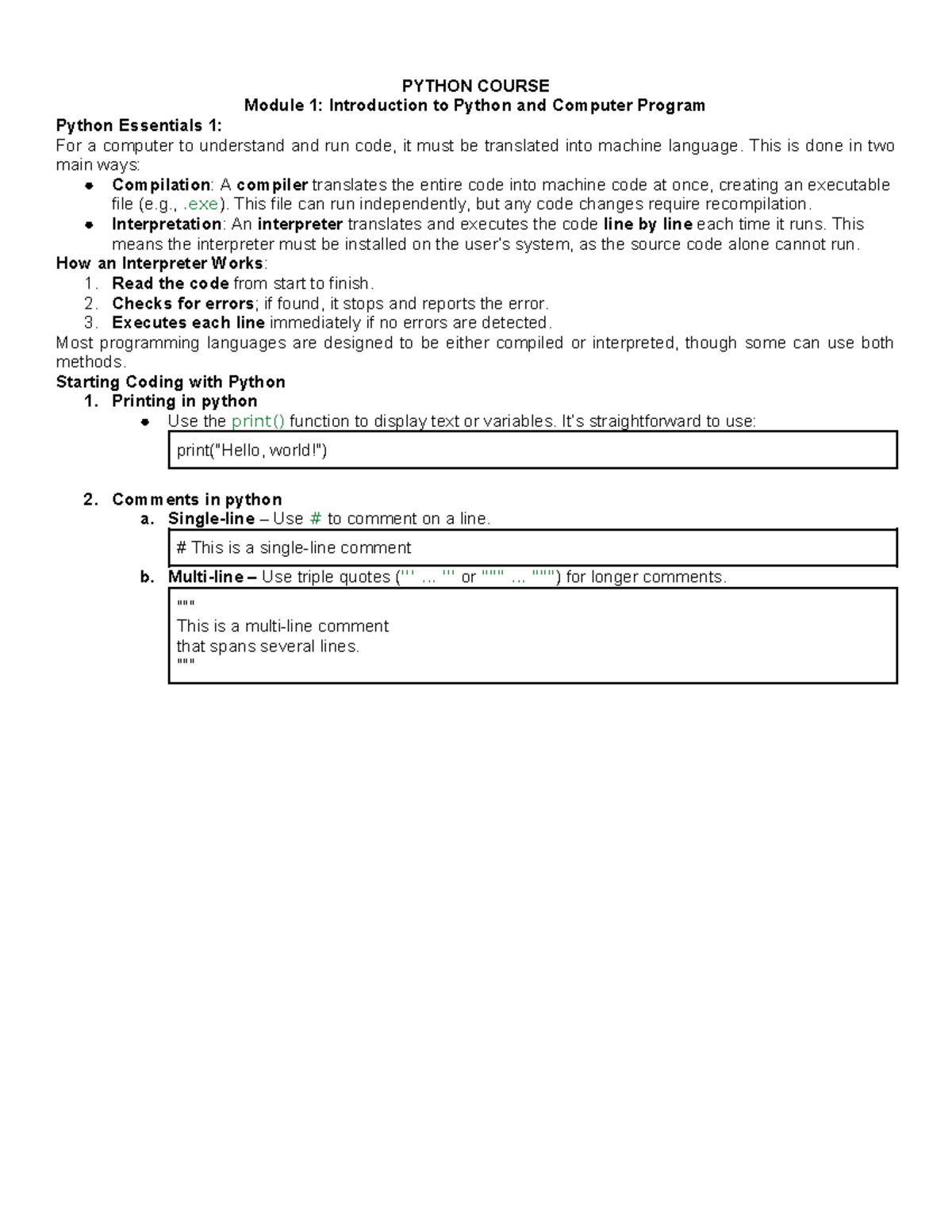 Python Course - Check this out - PYTHON COURSE Module 1: Introduction ...