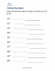 Ordinal numbers worksheet 1 20 | Planetspin.in