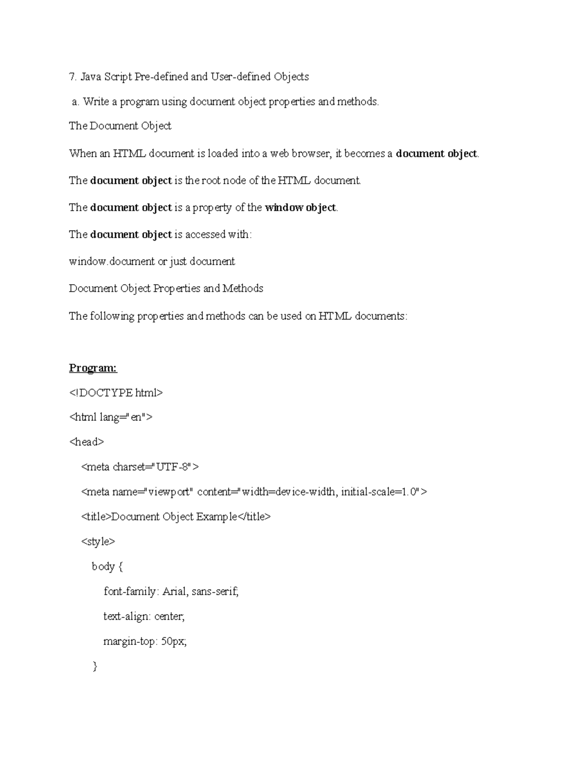 FSD Lab: JavaScript objects and methods programming guide - Studocu