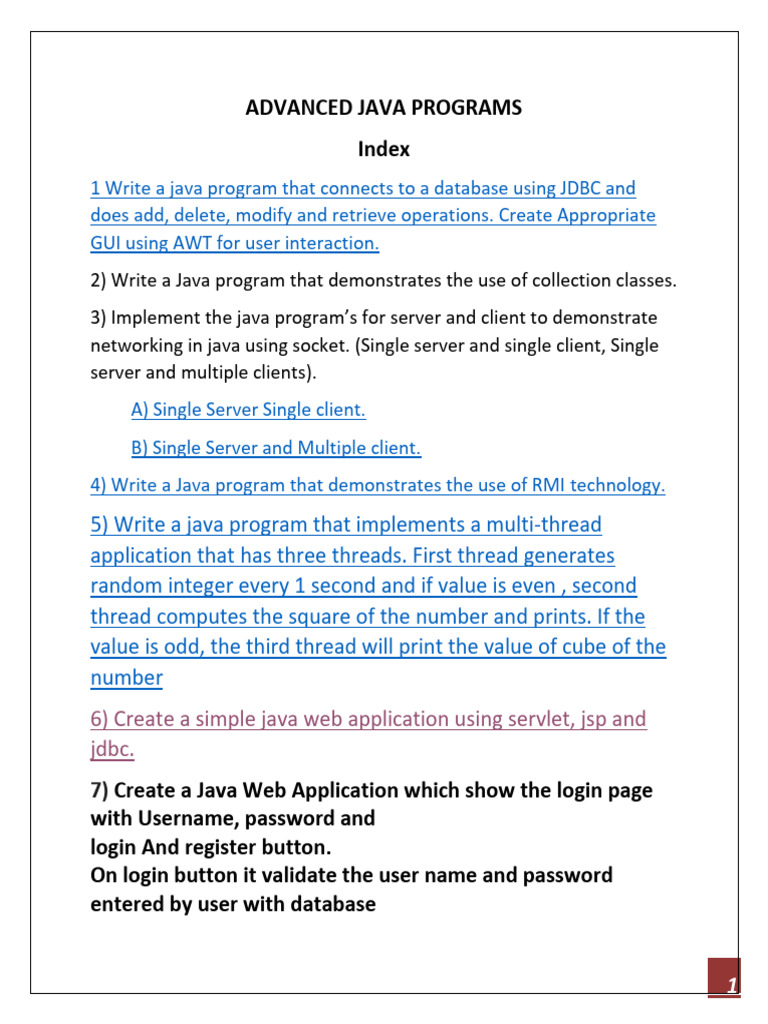 BCA Advanced Java Practical Syllabus | PDF | Programming | Computer Program