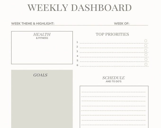 Weekly Dashboard & Planner Goal Tracker, To-do List, Organize Your Week ...