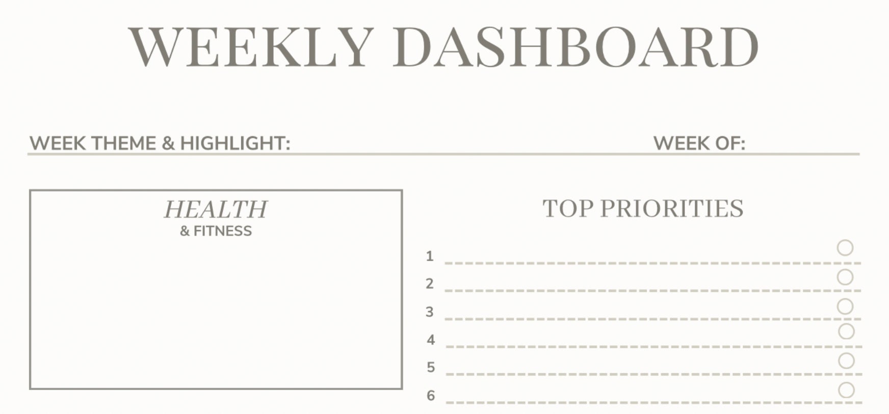Weekly Dashboard - 52 Weeks of Productivity – Busy Balance