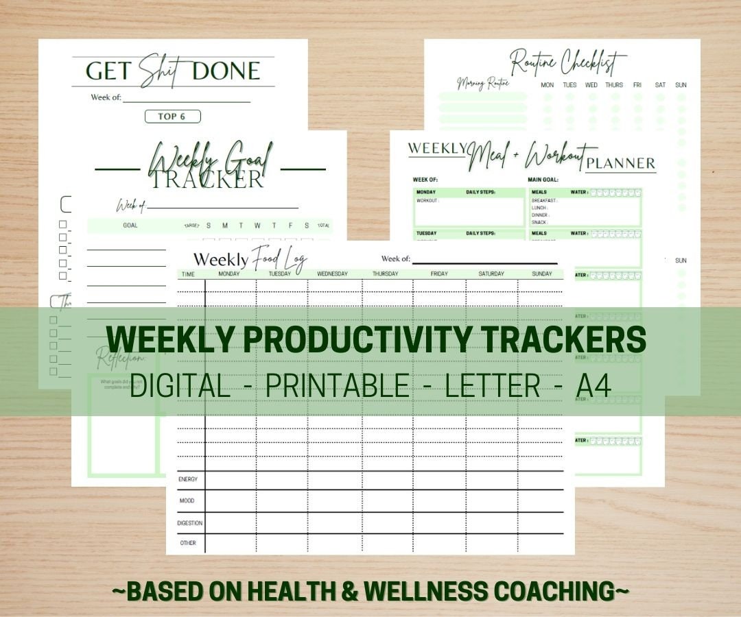 DIGITAL Weekly Productivity Trackers - Meal & Fitness Planning, Goal ...