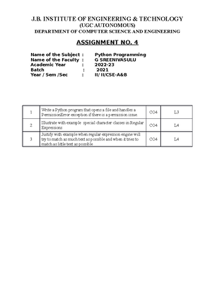 Python - Notes and question paper - Course Outcome (CO): Display ...