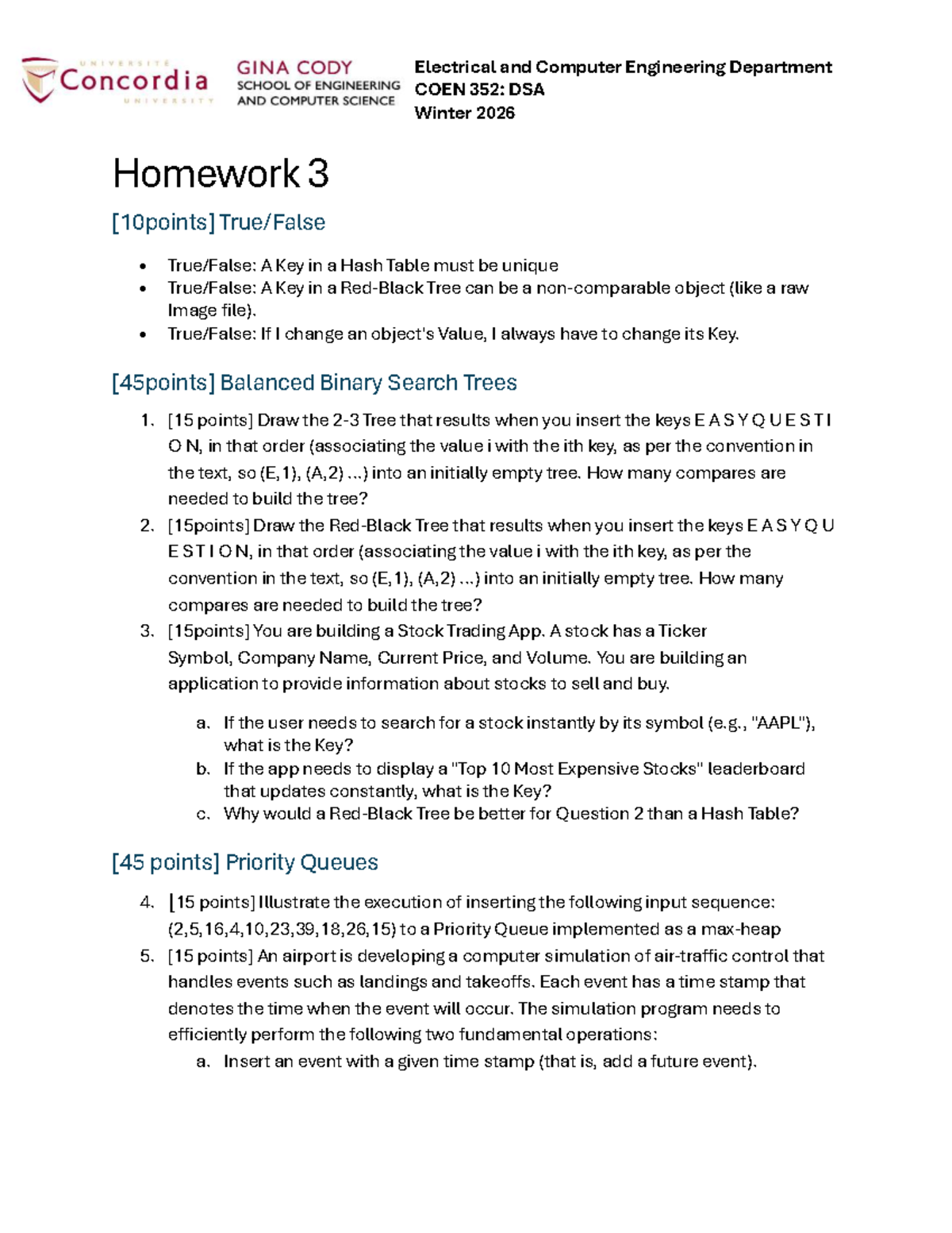 COEN 352: DSA Winter 2026 Homework 3 - Hash Tables & Trees - Studocu