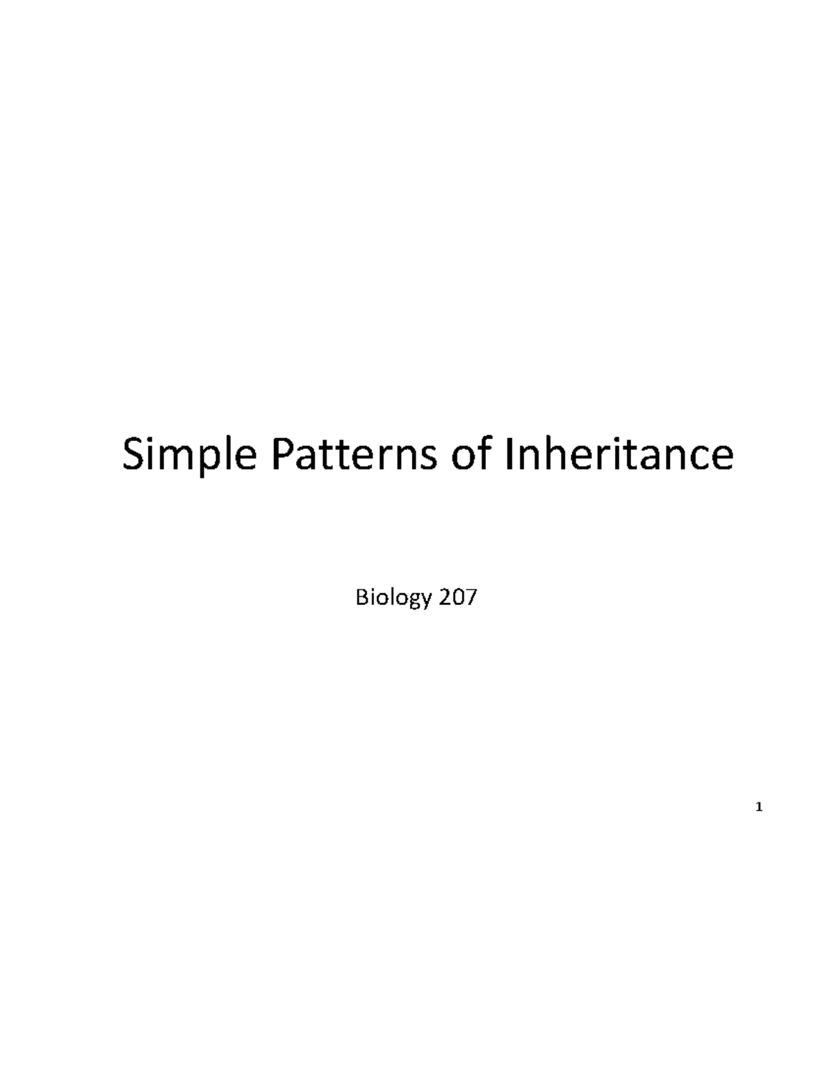 Biology 207: Simple Patterns of Inheritance Lecture Notes - Studocu