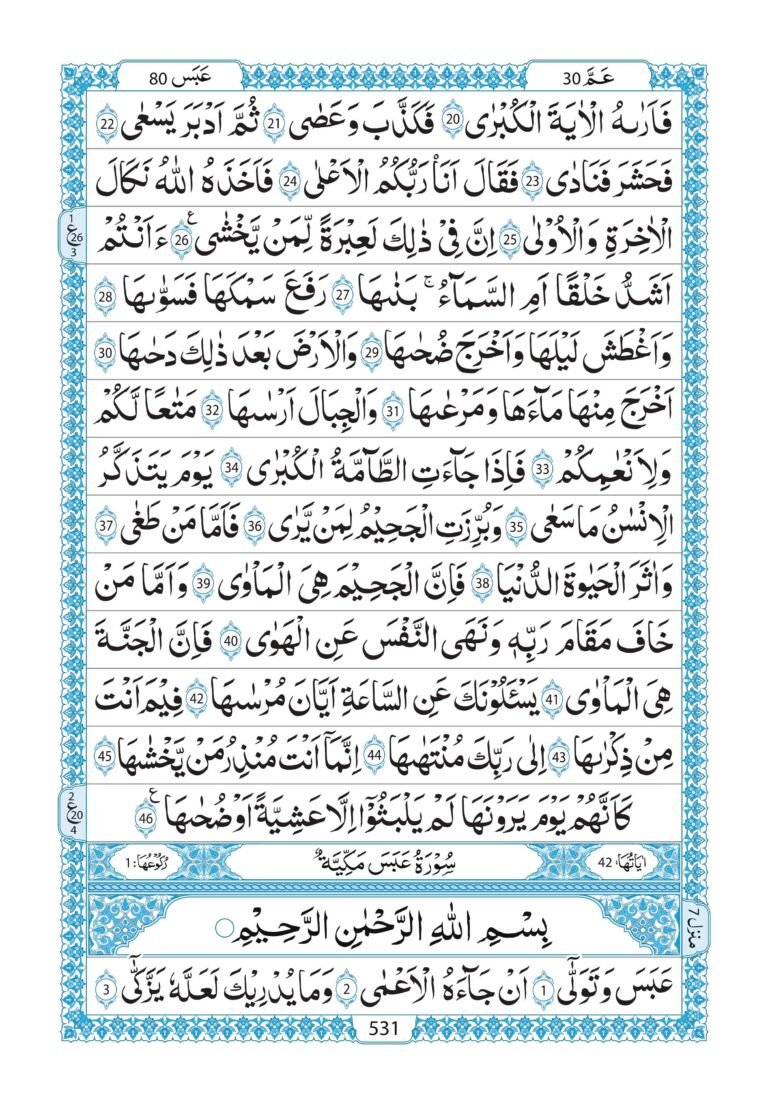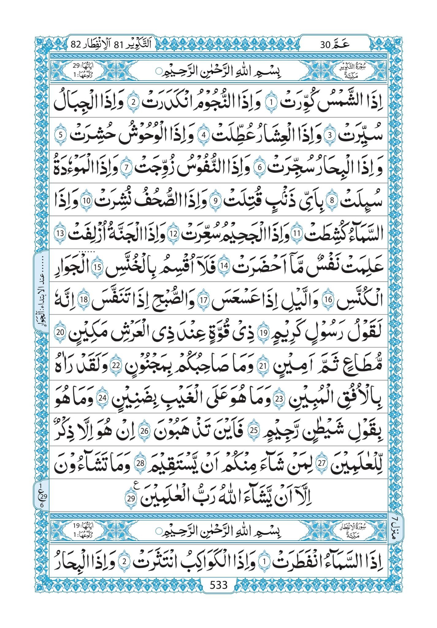 Arabic transcript of holy Quran - parah 30 - A'mma - عمّ of 30 and page ...