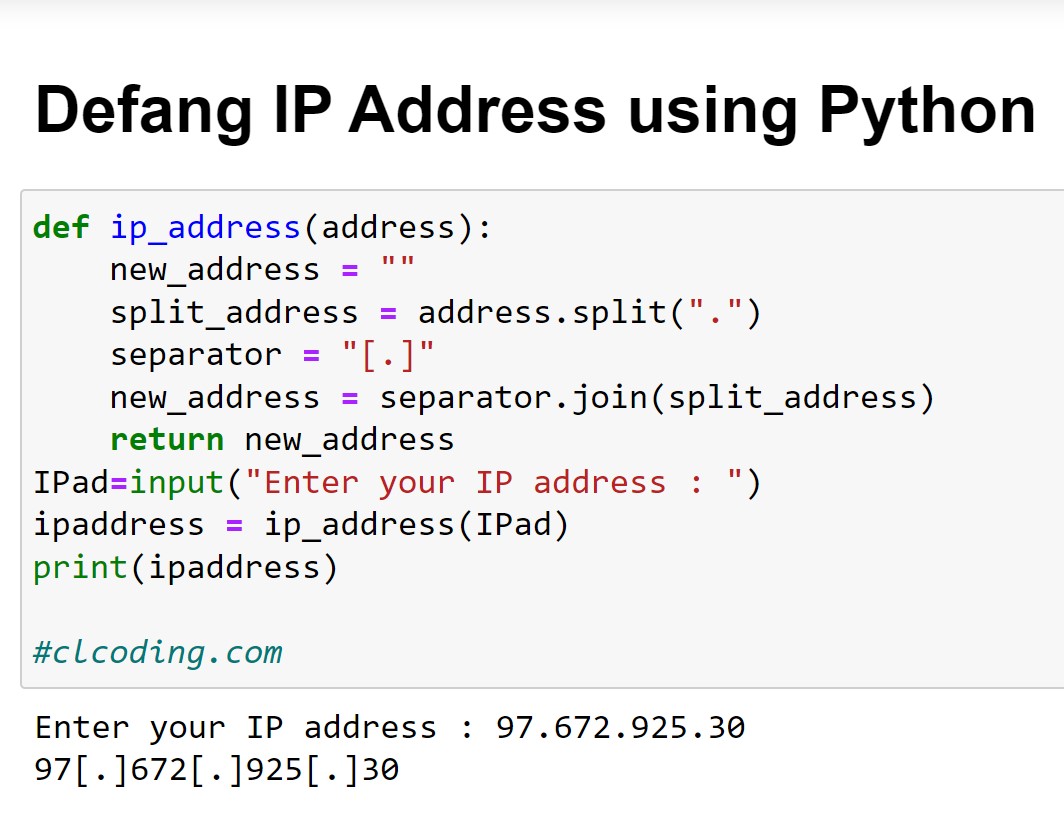 Python Coding on Twitter: "Defang IP address using Python https://t.co ...