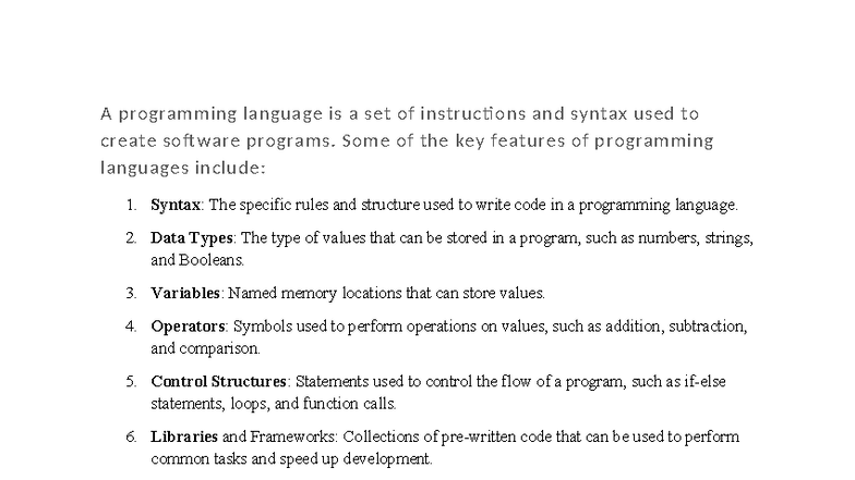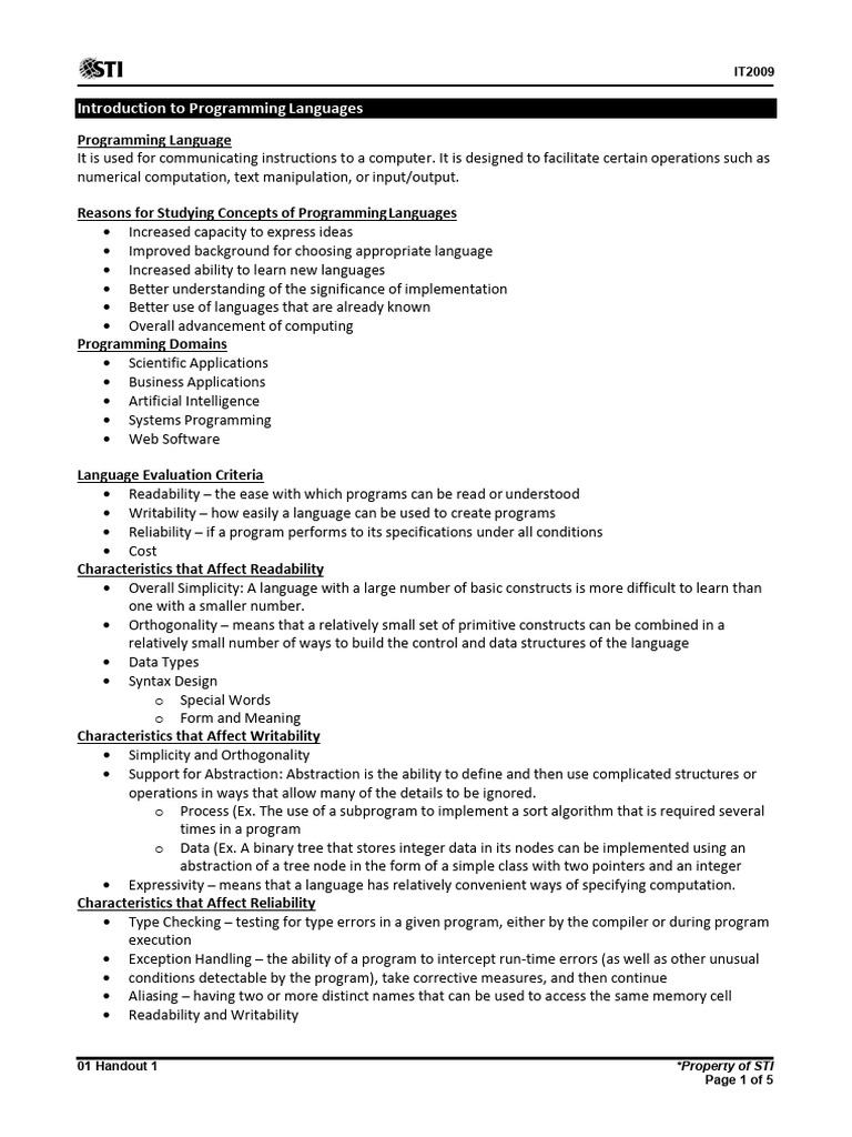 Introduction to Programming Languages: Key Features and Concepts - Studocu