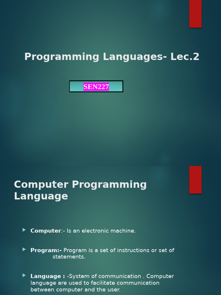 Lecture 2-Programming Languages | PDF | Programming Language | Computer ...