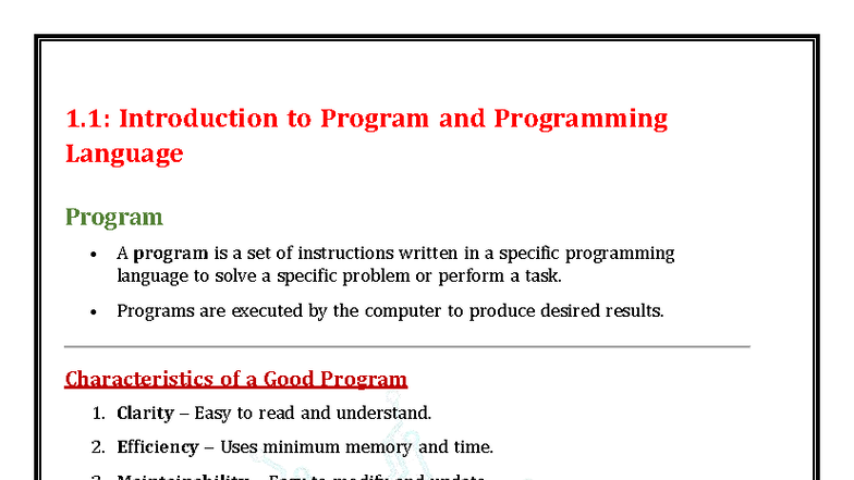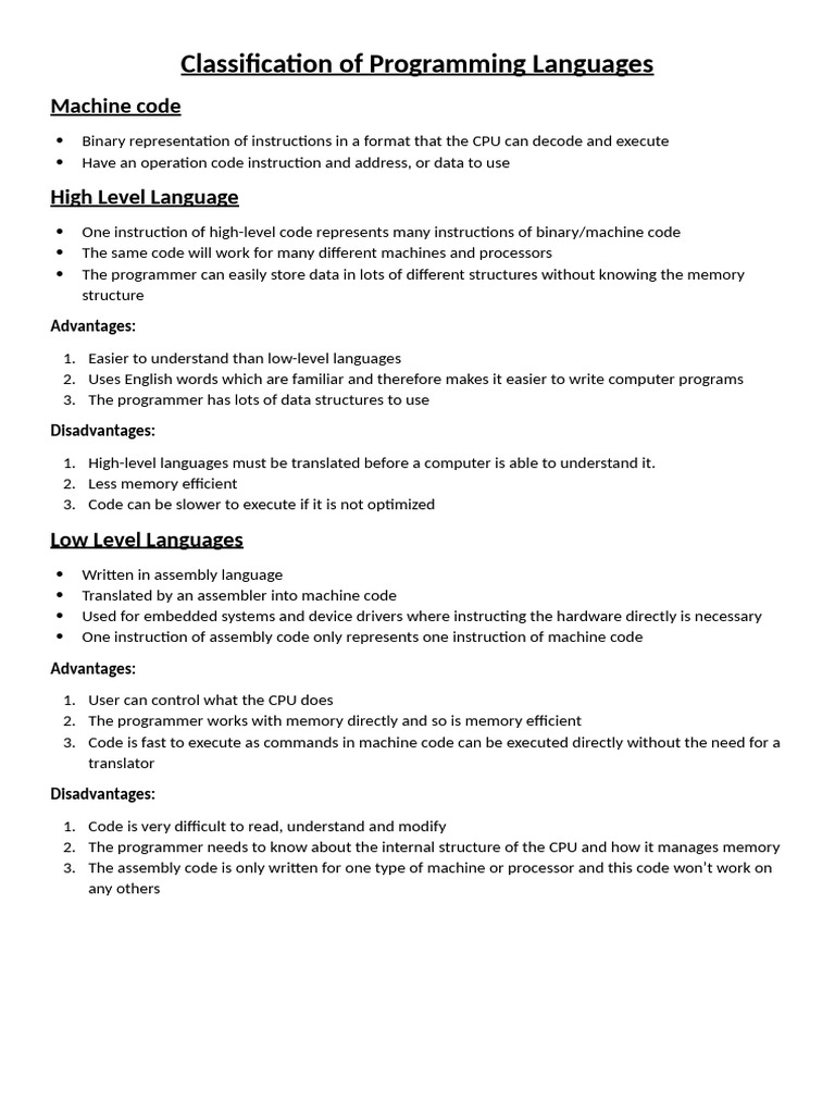 Class 1: Understanding Programming Languages and Their Types - Studocu