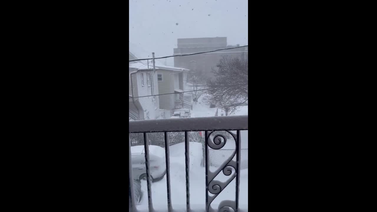 Thick snowfall blankets streets in Boston, Massachusetts, USA