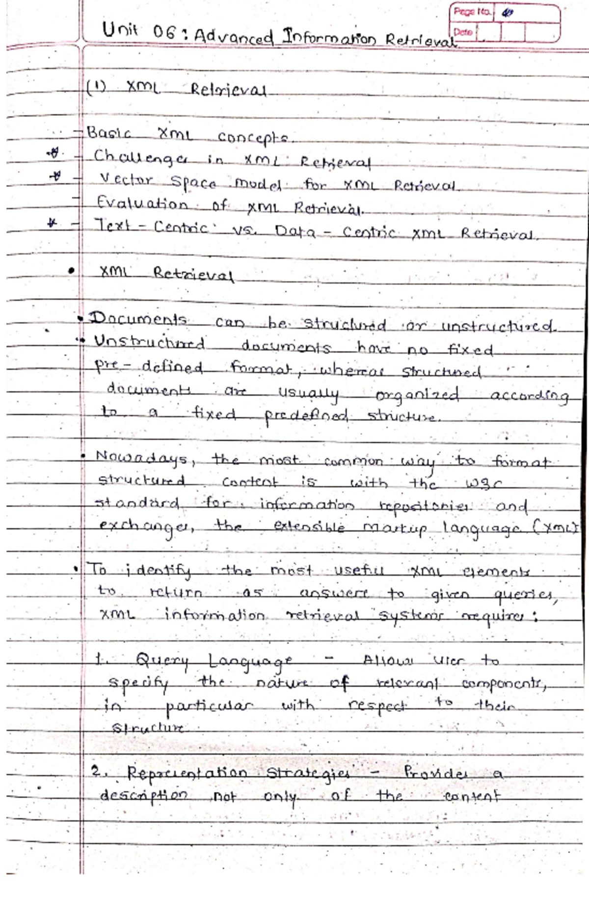 ISR Unit 6 - Advanced XML Retrieval Concepts and Techniques - Studocu