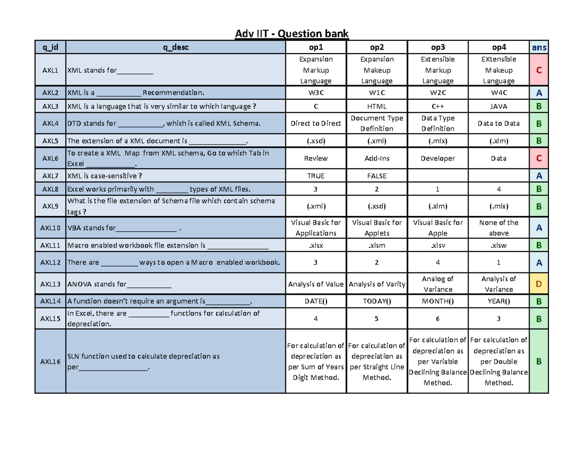 Advanced ITT MCQ Preparation for Final Exam - XML and Excel Concepts ...