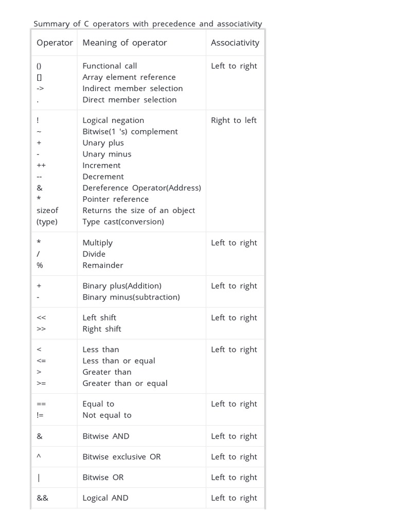 Based on this image's title: “Precedence and Associativity of Operators | Learn computer coding, C ...