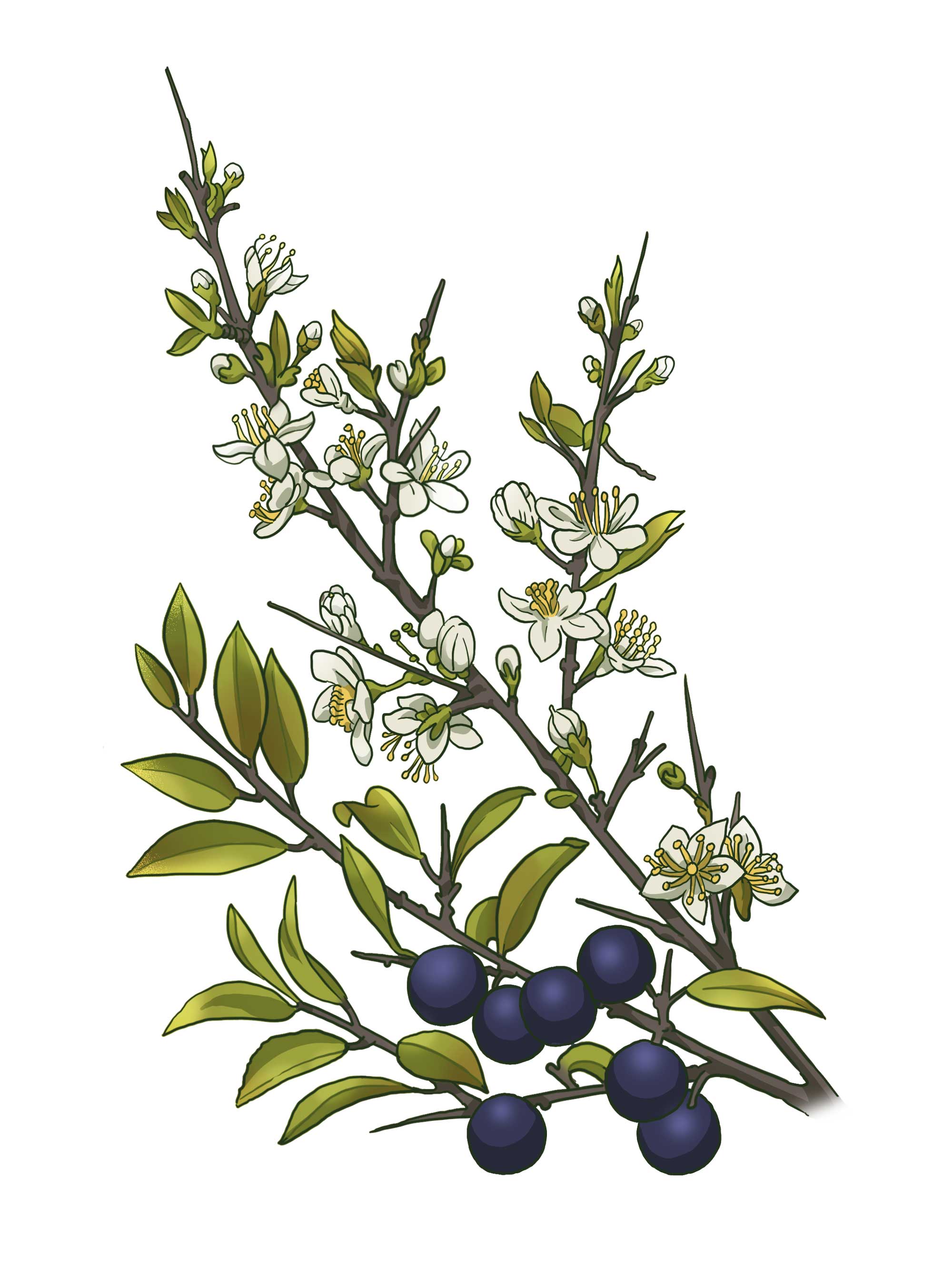 L’épine noire ou prunellier. | Botanical drawings, Botanical ...