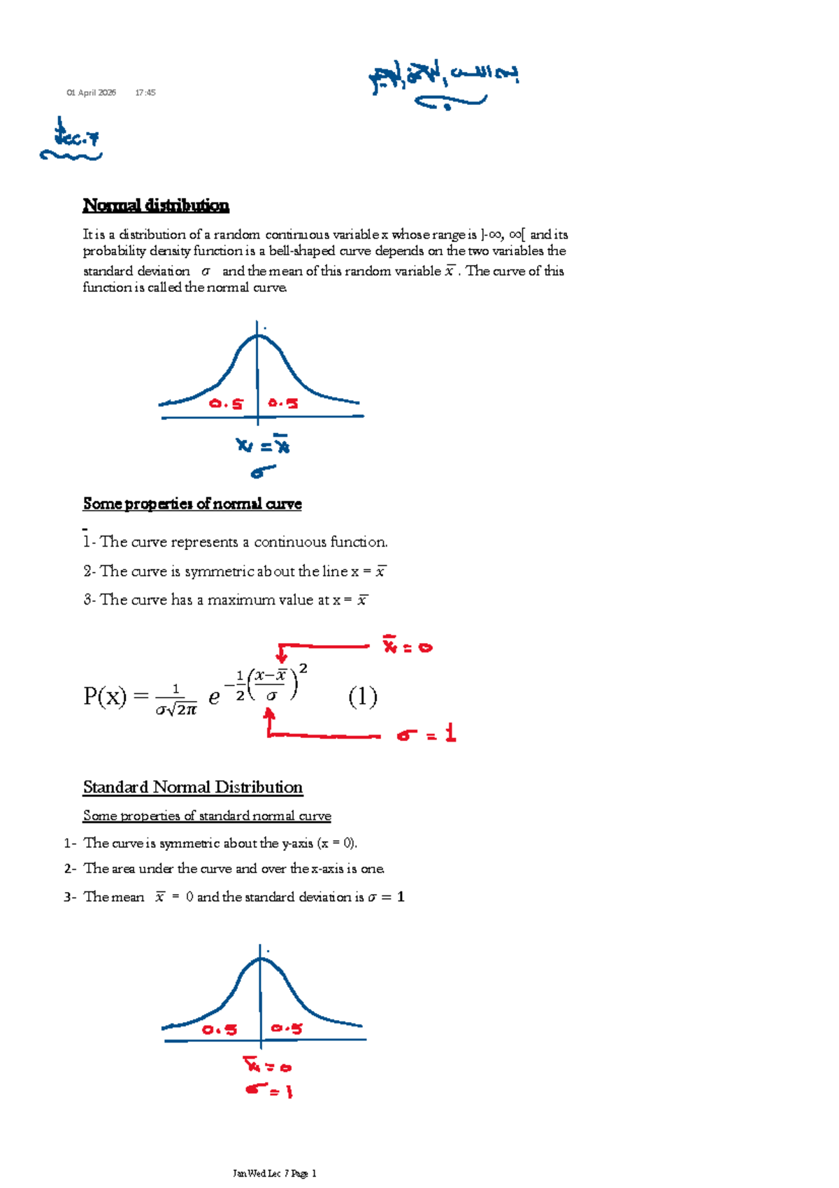 Jan Wed Lec 7 - Normal Distribution Overview and Properties - Studocu