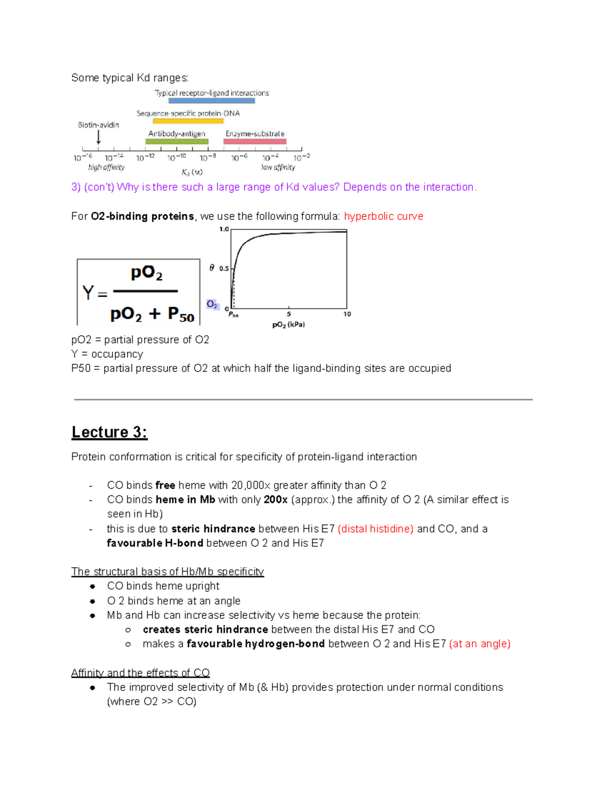 BIOC 3560 Lec 3: Understanding Kd Values and Hemoglobin Function - Studocu