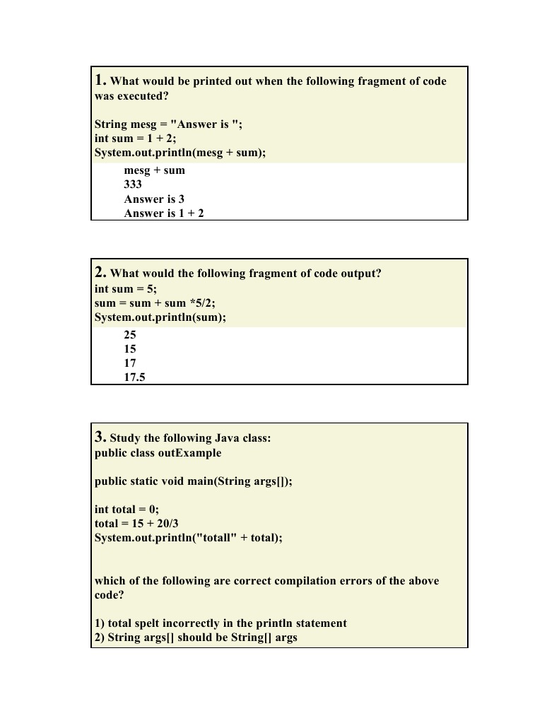 Java Programming Questions With Answers | PDF | Boolean Data Type ...