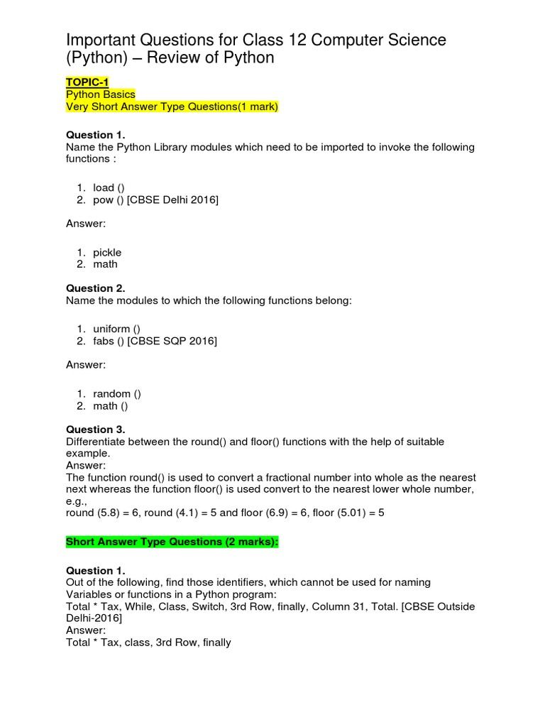 Computer Science Viva Questions Class 12 Python at Stacey Friedman blog