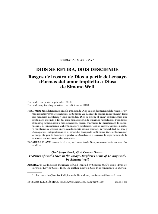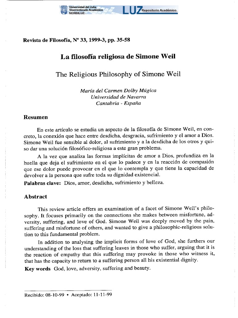 (PDF) El dios de Simone Weil: Reflexiones sobre su pensamiento ...