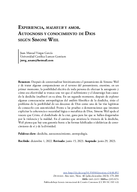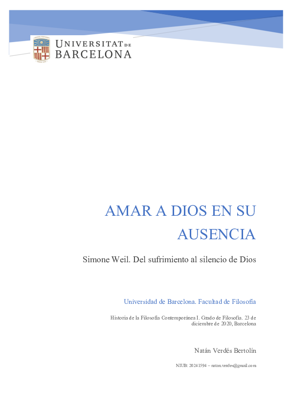 (PDF) Amar a Dios en su ausencia. Simone Weil. Del sufrimiento al ...