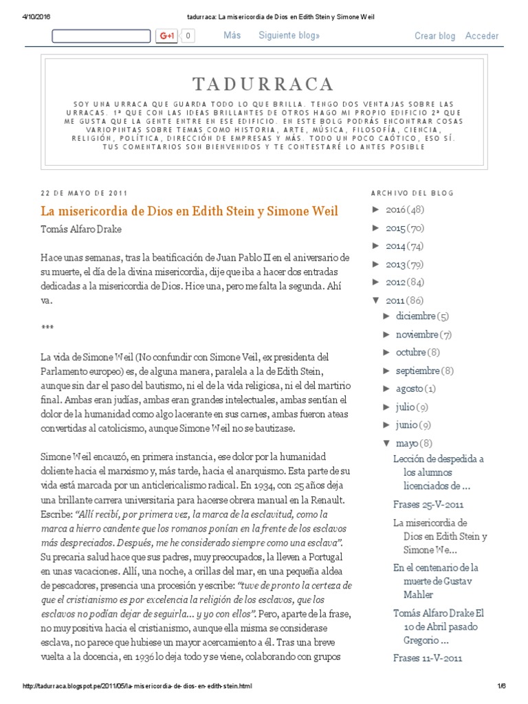 Tadurraca - La Misericordia de Dios en Edith Stein y Simone Weil | PDF ...