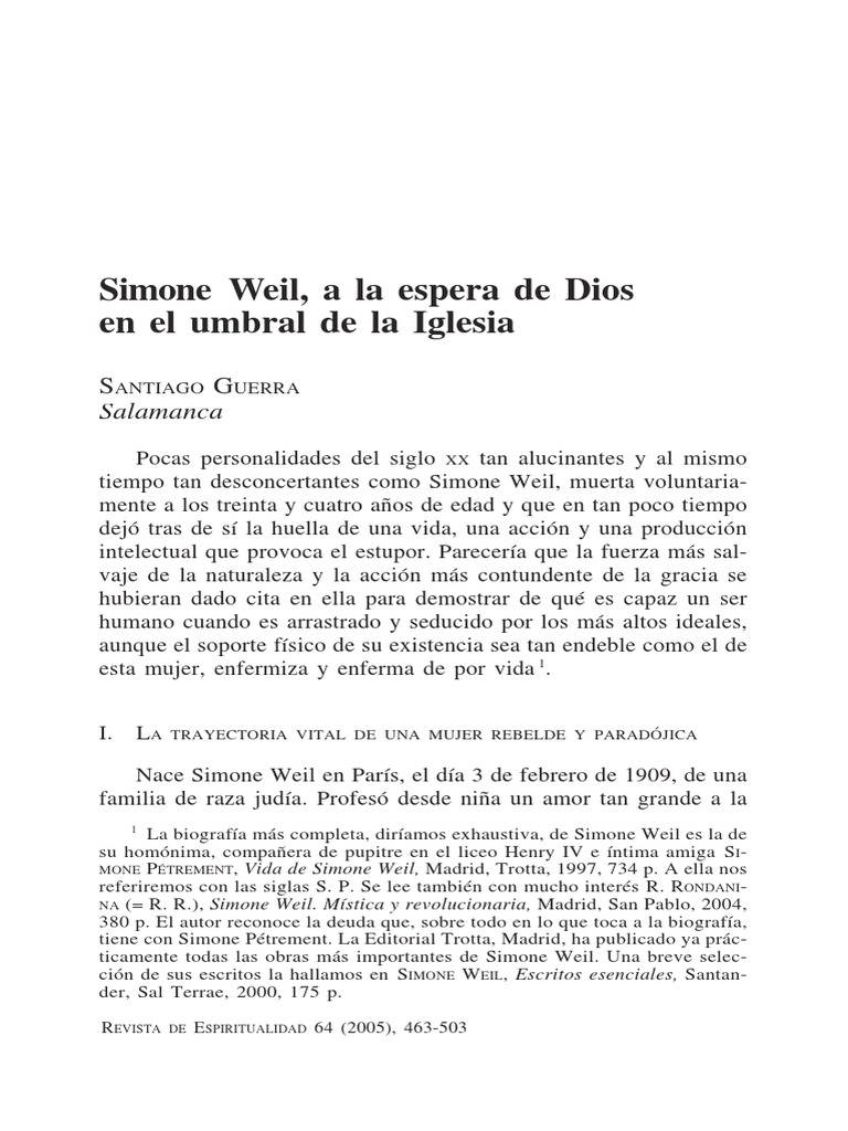 S. Weil, A La Espera de Dios | PDF | Creencia religiosa y doctrina ...